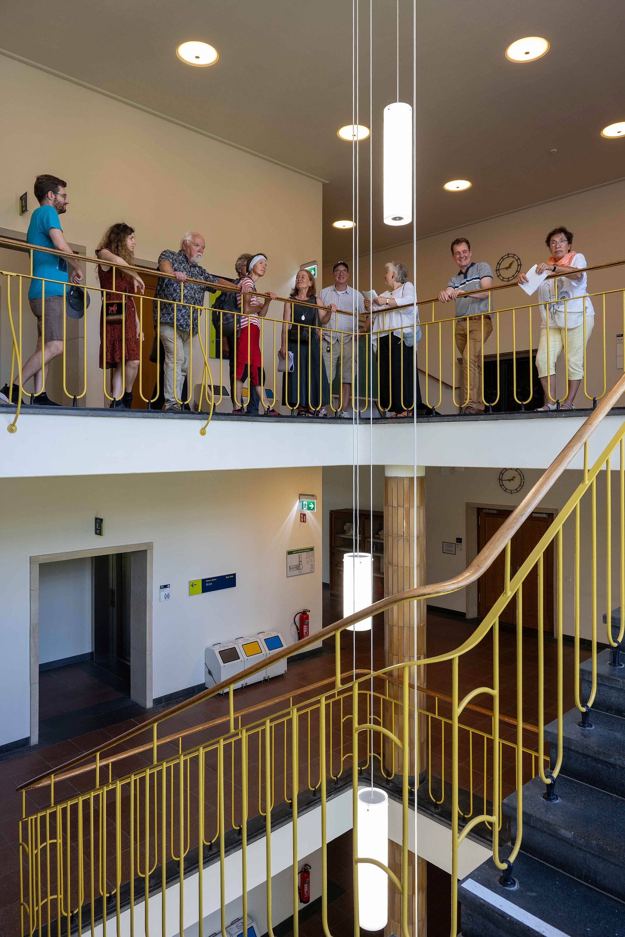 Das Interesse war groß, es wurden viele Fragen gestellt und Details erläutert. Insbesondere der Umgang mit dem Denkmal und die damit verbundene eher zurückhaltende sensible Herangehensweise an die Umsetzung der Sanierungsinhalte hat beeindruckt. Die Resonanz der Teilnehmer:innen war uneingeschränkt positiv.
